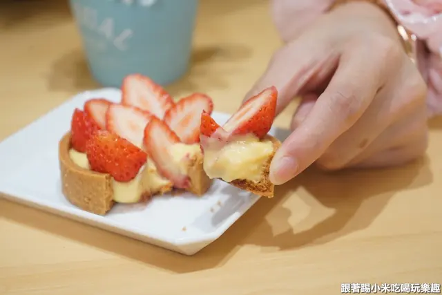 當然先來品嚐至愛草莓水果塔(140元),不會太甜的卡士達作為內餡,配上鹹酥有奶油香的塔皮就很好吃了~再搭上有酸甜滋味的草莓絕對是少女心的甜點(不過這是季節限定要等秋冬囉。)