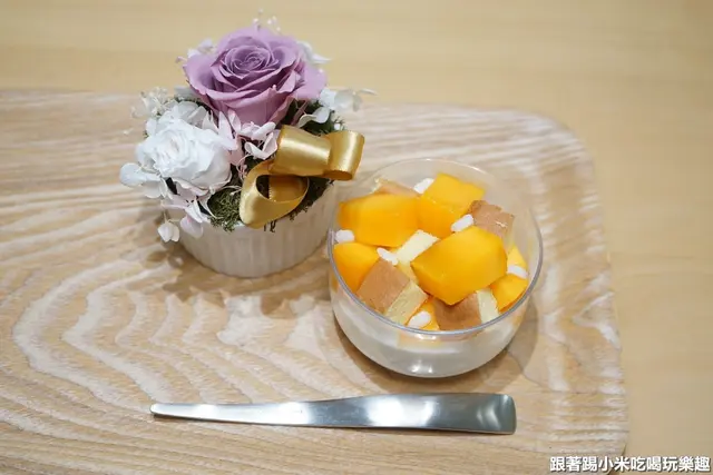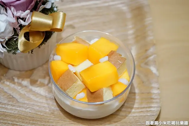 另外最新當季的芒果聖代也是小米的心頭好,由愛文芒果.椰子奶油.比利時糖.蛋糕所組成,精巧可愛的外表很討喜