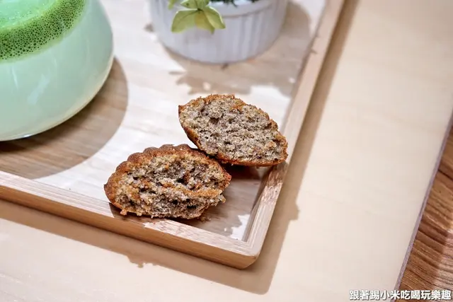 奶油伯爵茶瑪德蓮(60元),外酥內軟綿的口感非常棒,在濃郁的奶香裡頭有豐厚的伯爵茶香,配上一杯抹茶拿鐵就更棒了