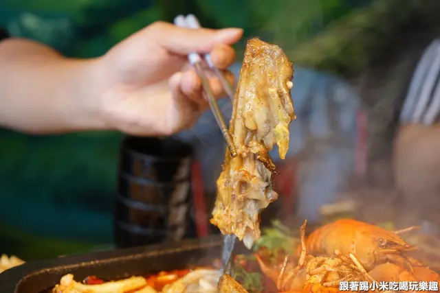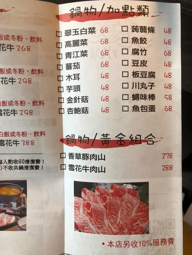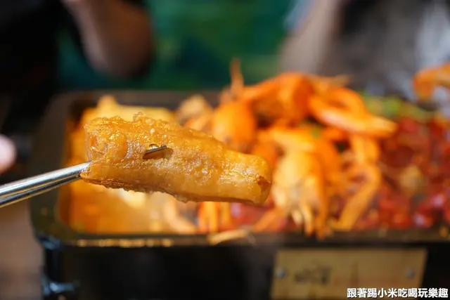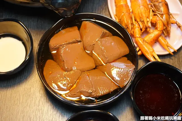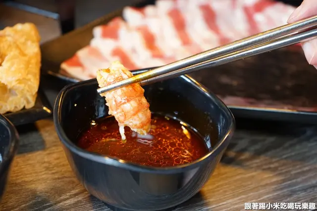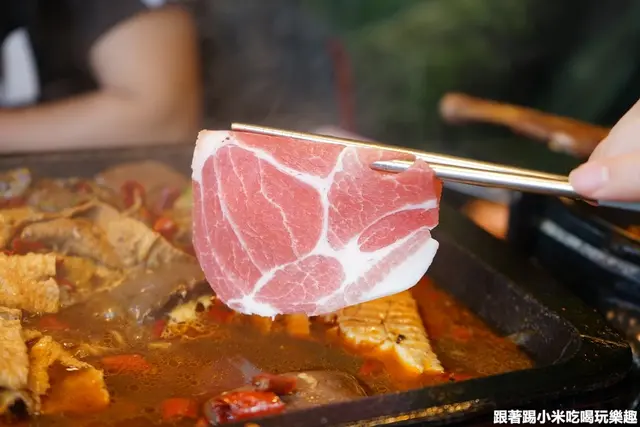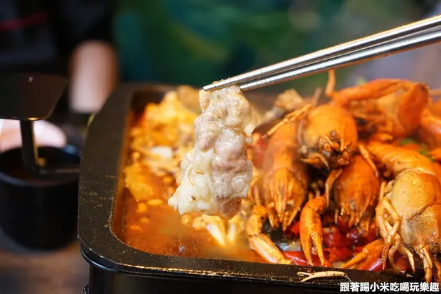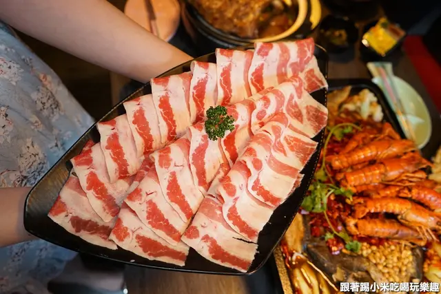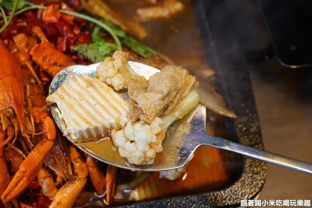 吃完烤魚及小龍蝦後可以來一些火鍋料及肉片來吸湯汁,個人蠻愛他們的雪花牛肉山(288元),涮2~3秒吸滿麻辣湯汁是軟嫩又帶麻辣甘甜的肉肉,來碗白飯來配就更讚啦!