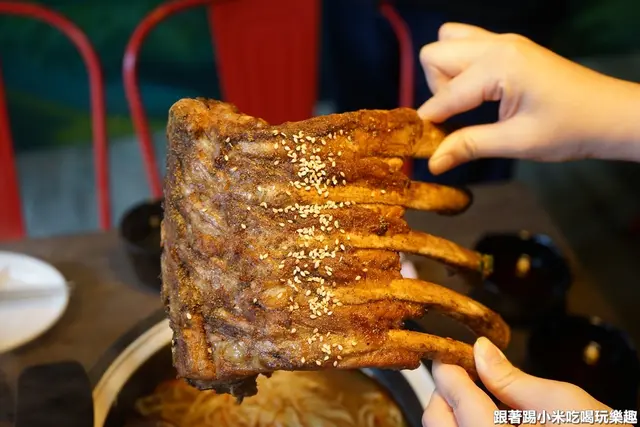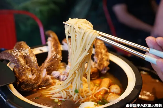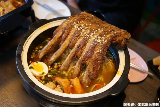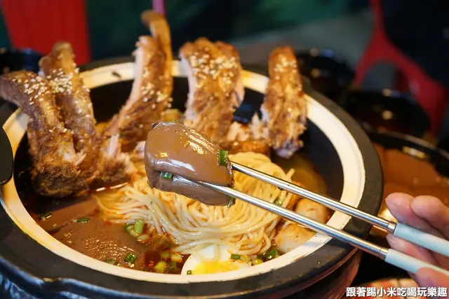 這是他們另一個招牌商品熊掌麻辣臉盆麵(288元) 像熊掌一樣大支的整排肋排,一樣是使用『十三香麻辣』去滷製肋排入味。