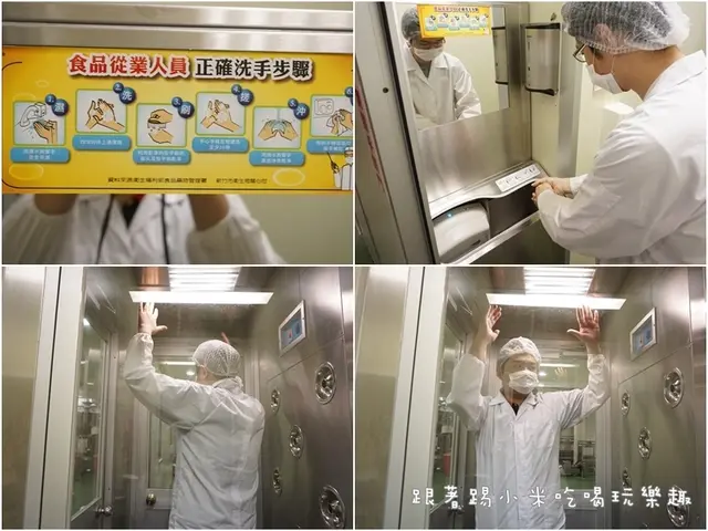 要進入工廠前, 還需要經過洗手及吹particle, 有在園區半導體工作朋友應該很有感覺吧XD 這一道是來控管負責摃丸生產人員潔淨度, 讓食品能保持衛生品質