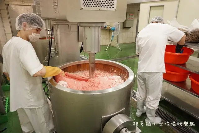 最後打成是新鮮又粉嫩的肉漿, 以色澤來看是感覺到其新鮮所在, 不管是廠長或領班會定期每桶抽檢, 依他們的經驗看會判斷此桶肉漿口感及品質是否符合他們的要求