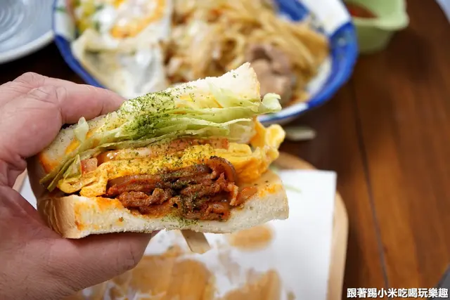 一口咬有微微微辣味甘甜又軟嫩五花肉+滑嫩的歐姆蛋+爽脆的蔬菜等美味又健康的組合 這個是小米推必點的口味!