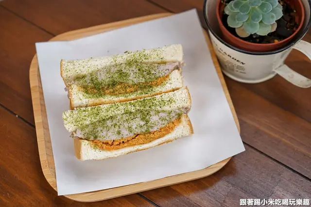 這個芋泥肉鬆吐司(75元)是隱藏版的菜色,要自己跟老闆點才會有唷,對小米是芋頭控來說是相當誘惑的角色