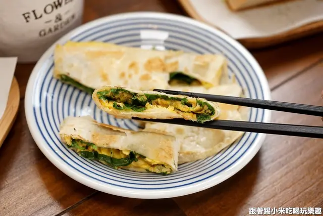 塔香脆皮蛋餅45元,的確是酥酥的外皮口感,裡面是充滿九層塔香及蛋香~