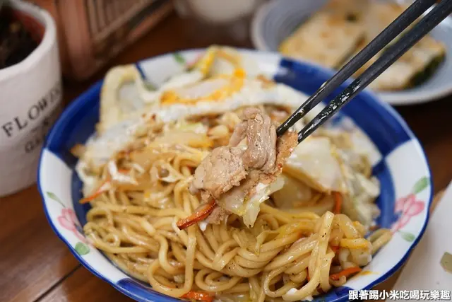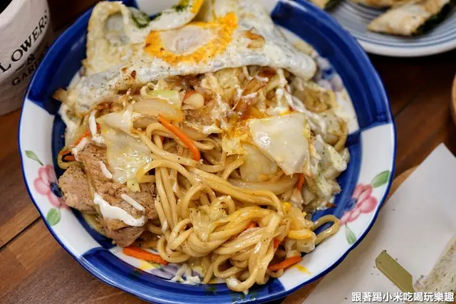 日式炒麵是傳統的柴魚+沙拉鹹甜口味,裡面還有肉排.高麗菜等