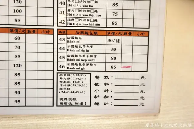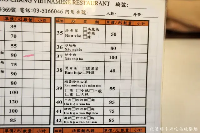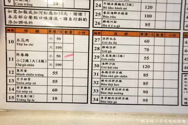 來看看Menu吧, 他們餐點種類還蠻多的, 有飯類/河粉/涼拌/湯菜/青菜/法國麵包等..... 價格上大部分不超過100元, 其實算蠻平價的. 另外菜單上會注明部份餐點走清淡路線, 他們還有提供一些越式調味料自行針酌使用~ 難怪他們沒有在賣飲料, 只有提供免費開水, 我想可能是對他們食物有信心不會讓人很渴吧XD