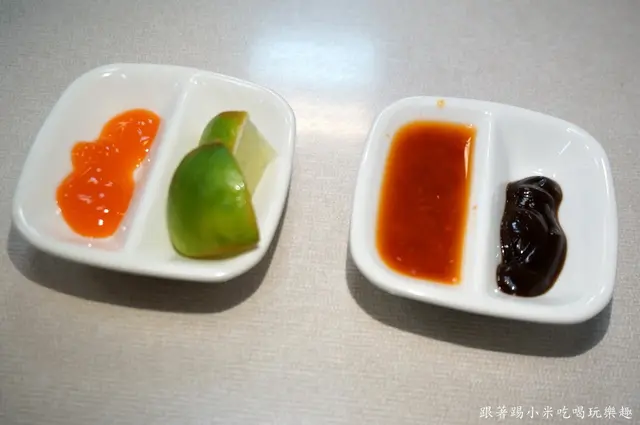 左起是辣醬/檸檬片/特調魚露/上等海鮮醬, 比較特別的是特調魚露是酸V中帶點小辣, 很醒胃. 上等海鮮醬是有點甜味鹹香醬.