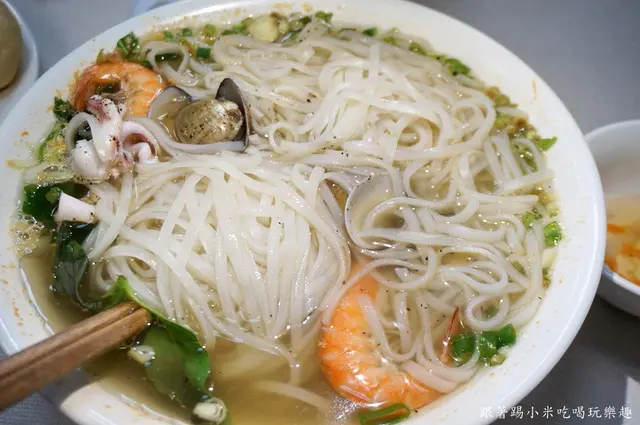 海鮮河粉 90元(可選河粉/米線/麵) , 上桌時有嚇到小米一下下, 河粉份量好像有點多
