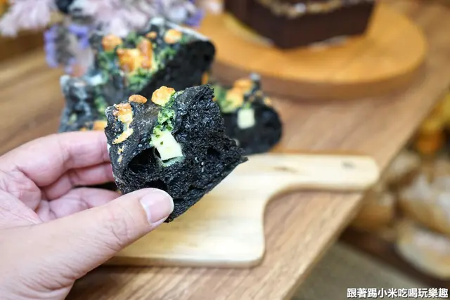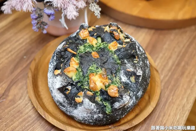 墨魚包是軟綿帶點嚼勁的口感,上面有鹹香的蒜泥及乳酪,再配有墨魚汁的鮮香小米很喜歡 愛吃鹹麵包的朋友首選唷!