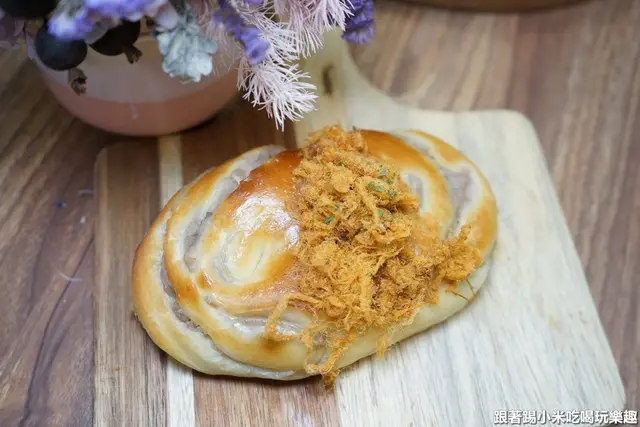 香芋肉鬆32元是鹹甜口味的麵包囉。