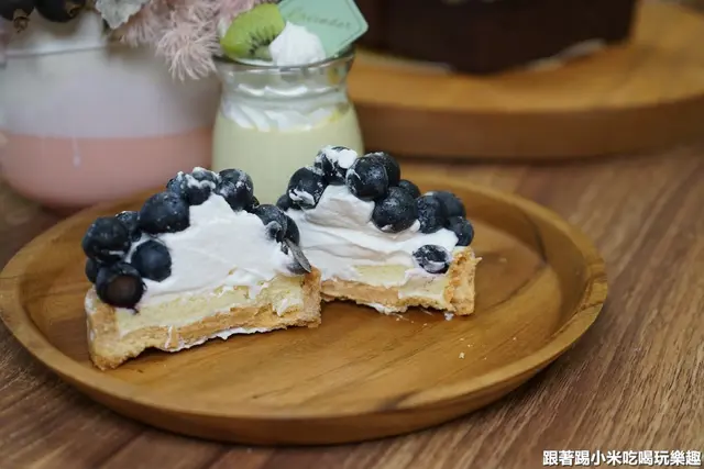 首推爆炸多藍莓水果塔95元,超多藍莓吃起來超爽,配上甜甜奶油及鹹酥的塔皮完美