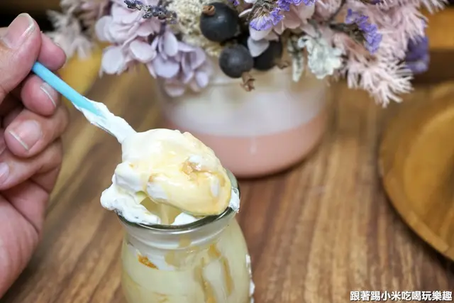 水果焦糖布丁45元,很實在的用料,焦糖也是他們自己烤出來的,加上牛奶濃郁的布丁很好吃~這也是小米的粉絲專屬優惠贈品,快來搶好康吧,每天限量100份唷。