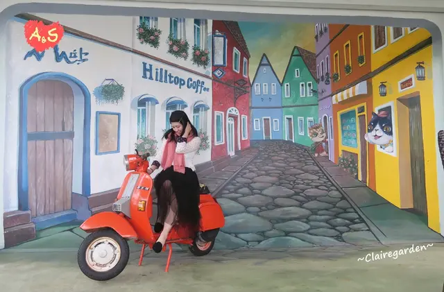 外圍有一個3D壁畫搭配著橘色機車