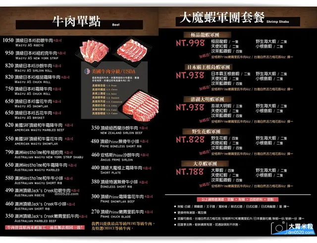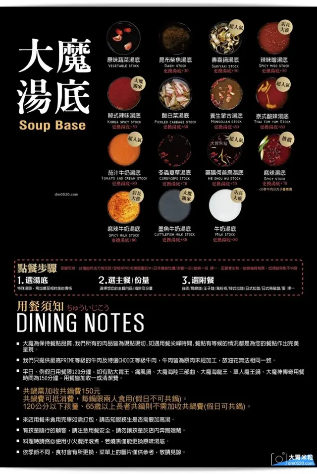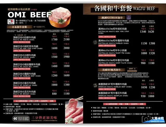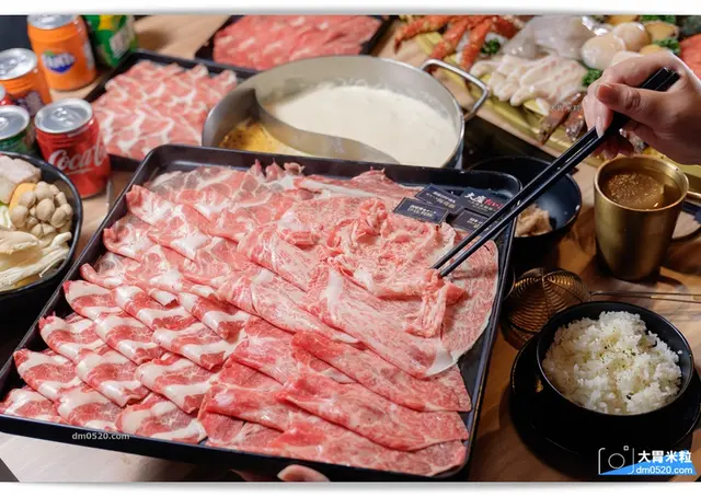 由於大魔鍋物的肉品都是選用頂級品質部位,推薦牛肉品嚐三分熟最正點!