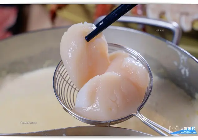 還有半生熟干貝加上軟絲、鱘龍魚片,每種海鮮精華搭配鮮甜湯頭,就算吃到痛風也願意啊!!!
