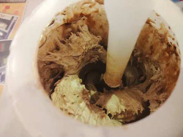 雖說是紅茶味,但吃起來其實是奶茶吧感覺是蛋捲冰淇淋加上紅茶茶葉粉攪拌而成還蠻甜的~是還不錯吃啦再加上脆片的脆脆口感~我喜歡(像在吃餅乾不過缺點就是有點少...又有點小貴這樣