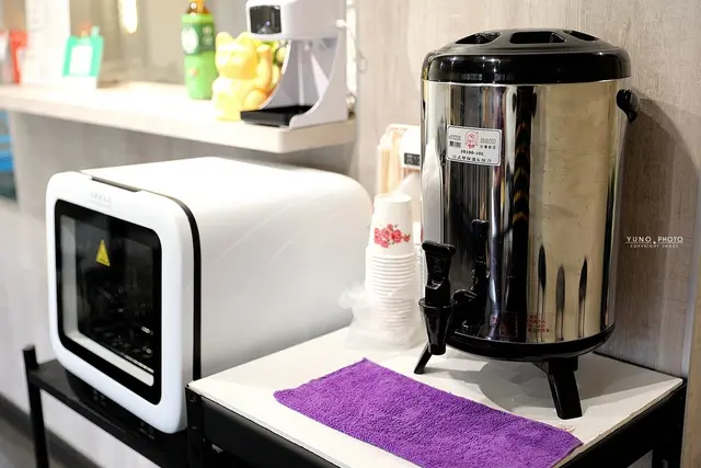 選擇內用的朋友們 櫃台旁有供應每日免費飲品可以搭配麻辣燙一起享用