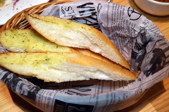 剛烤好的法國麵包已經抹上香蒜醬,酥酥脆脆的口感很好吃