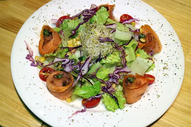 煙燻鮭魚被捲成一朵朵美麗的花,看著倒是挺賞心悅目的
