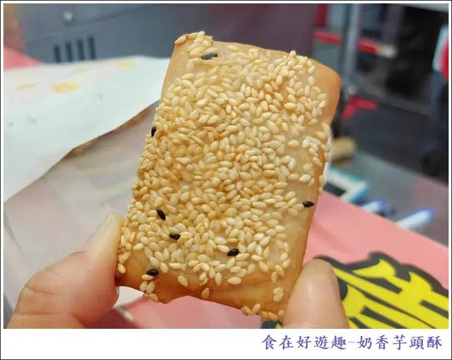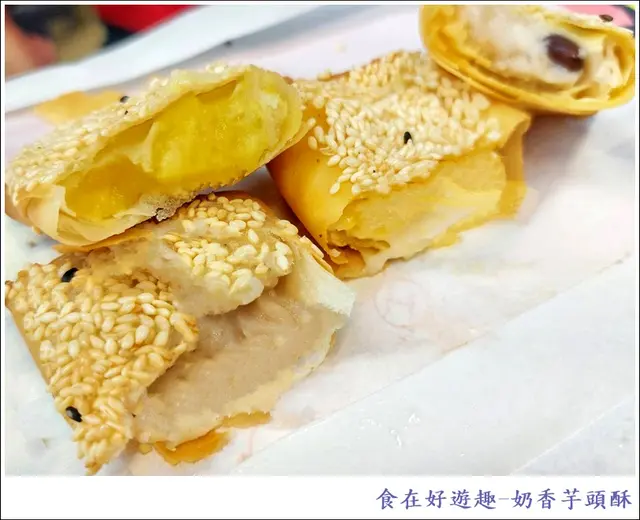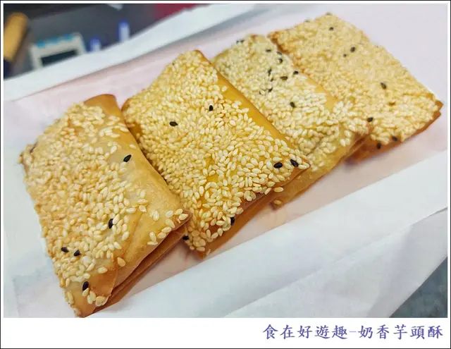 酥香餅皮鋪上滿滿芝麻,內餡是滿滿的大甲鮮芋,大口咬下芝麻香氣加上奶香,絲滑般口感的芋泥餡,讓我想起了某宮廷劇裡的小點心,現在不用看著劇流口水了🤣香酥可口,此生必嚐💕