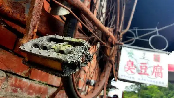 高高掛著的老鐵馬 , 活脫脫就是老吳臭豆腐的招牌啊!