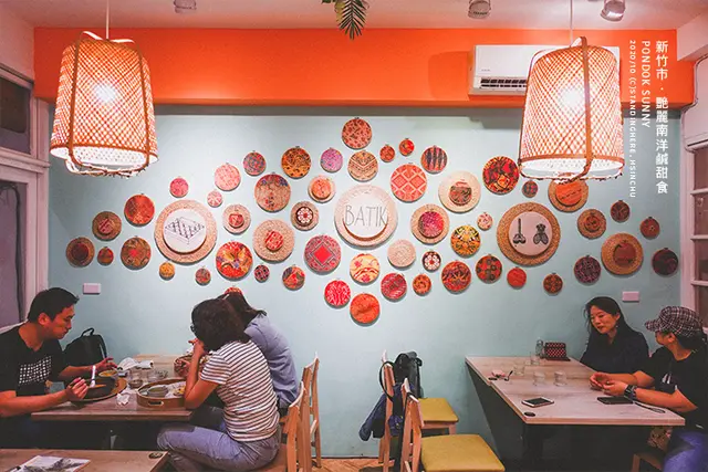 但搭配一些南洋的元素、圖騰、面具和竹編燈罩等等,氛圍就出來了。