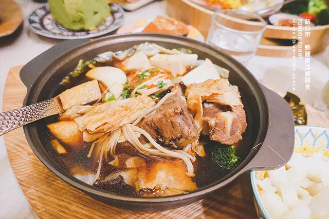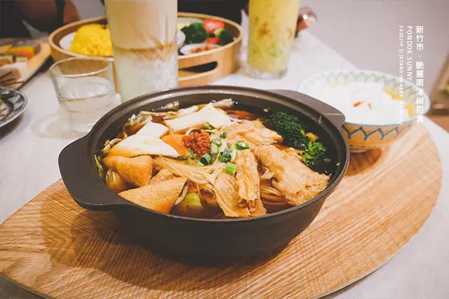 鍋類可以搭配主食薑黃飯、刀削麵、細黃麵或新埔粄條。