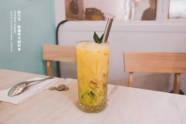 以芒果西米露為基底,加入羅望子凍和錢多錢多——