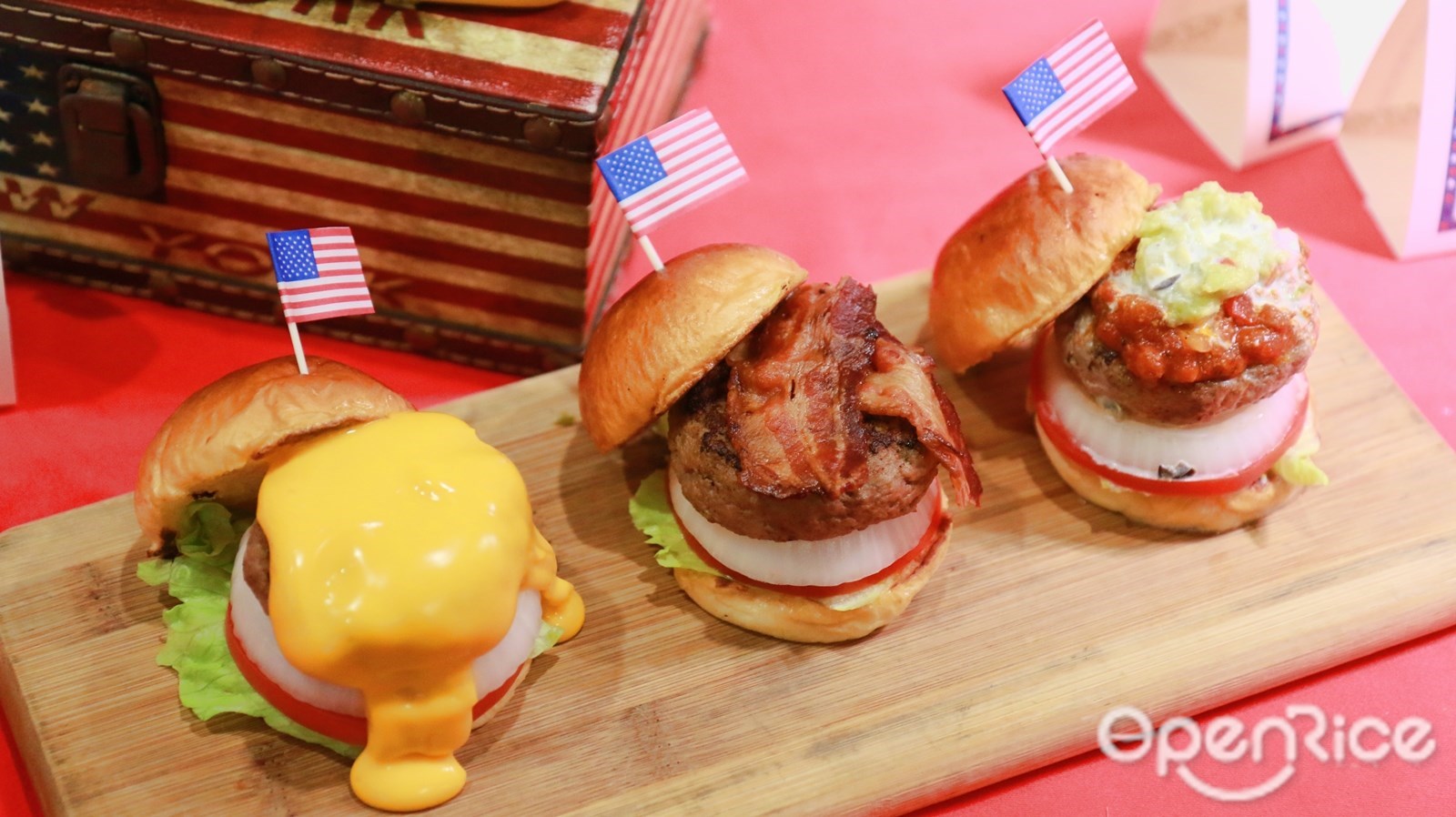 🔺主廚特別設計了迷你版漢堡,嚴選優質美國牛製成美味厚實的漢堡肉,並呈現最經典的口味─培根生菜番茄漢堡、起司牛肉漢堡和墨西哥牛肉漢堡。