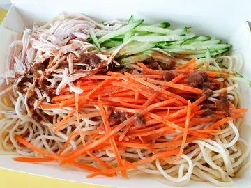 天氣爆炸熱,一走出冷氣房就冒汗,午餐都沒胃口吃,剛好有活動到市政府附近,午餐在復興二路覓食,因為買飲料新發現這家良麵,賣的是涼麵,雖然騎樓沒有冷氣,好多上班族坐在這裡用餐好厲害,可能就是心靜自然涼醬子XD每天新鮮製作涼麵口味很多種,還有優格涼麵跟堅果涼麵,口味上蠻創新的 外帶的人很多,老闆忙翻了感覺泡菜涼麵很厲害,不過第一次吃,菓子還是選了最保守的雞絲涼麵聽說加辣油更好吃喔!是老闆自家煎焙熬製的雞絲涼麵(大) NT.70 有滿滿的雞肉絲、小黃瓜絲、紅蘿蔔絲,涼麵也好多,小鳥胃有點吃不完淋上香噴噴的麻醬在夏天吃很爽口,食材很新鮮,如果吃習慣了7-11的滑溜涼麵,可能會覺得偏乾又不冰,菓子覺得放在冰箱稍微冰一下可能會更順口良麵館以食材原味為主,適合喜歡吃清淡不油膩的澎油,下次經過不妨試試喔~…さらに見る