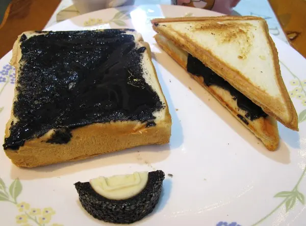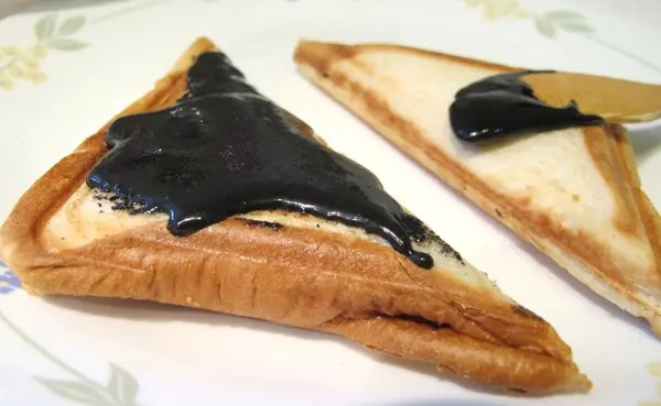 巨鼠妹也有點懶,直接土司烤熟後,將『黑芝麻醬』塗上去 即可!