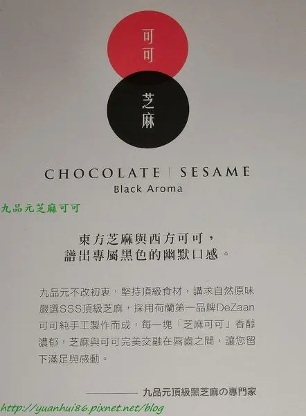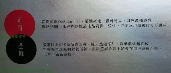 品項內容數量芝麻可可禮盒黑芝麻可可(苦甜)(6入)1盒白芝麻可可(苦甜)(3入)