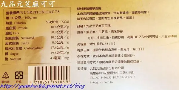 九品元:香醇濃郁『芝麻可可』禮盒 !