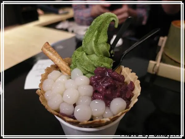 其實就是宇治金時的升級版,把上面兩球香草冰淇淋改成抹茶冰淇淋。黃鴨子超愛這組合的,從頭到尾都是抹搽抹茶阿!!!!