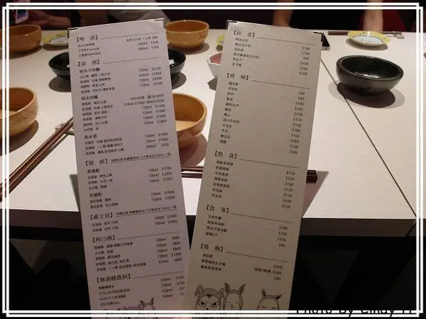 因為黃鴨子不是主要點菜者,MENU也沒認真拍,加上這天晚上也是好友買單,因此其實不太記得每項的單價是多少。但大概來說烤物一份2支約在百元上下,煮物炸物也在百餘元,算是適合消夜小酌的好地方。但若是要當正餐也可以,就像我們多點個義大利麵或是壽司、烤飯糰當主食,飽腹滿足之餘荷包也不會太傷,推薦給大家囉~