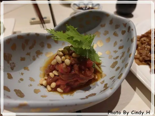 在台灣好像很少有餐廳有生牛肉提供? 因此聽良哥說27有就點來試試了。牛肉本身頗滑嫩,以些許麻油提味也不錯,有帶出牛肉本來的甜度。是說既然有這麼好品質的生牛肉可以用,那可以做一下韃靼牛肉嗎?好想念啊~