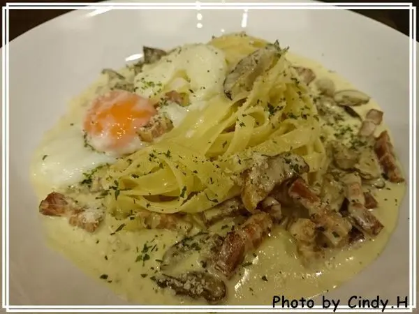 幾年前黃鴨子超級熱愛奶油培根蛋黃麵,曾經連續N天外食都點它,然後吃到倒退三步心有恐懼這樣!! 事隔多年再嚐培根蛋奶麵,美味回憶都回來了,培根好香連蛋奶醬都充滿培根油脂及香氣,這道我也愛!!!