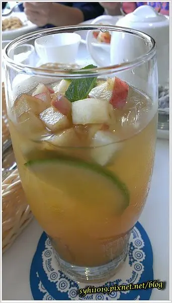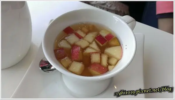 將蘋果粒另外放在杯中,可以很清楚感受到蘋果粒在茶中悠遊的感受!