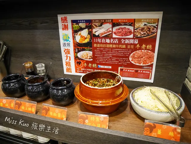 自助佐料區位於角落後方,基本佐料皆有。推薦選擇店家「特製綜合醬料」沾新鮮溫體牛整個超級爽口夠味!