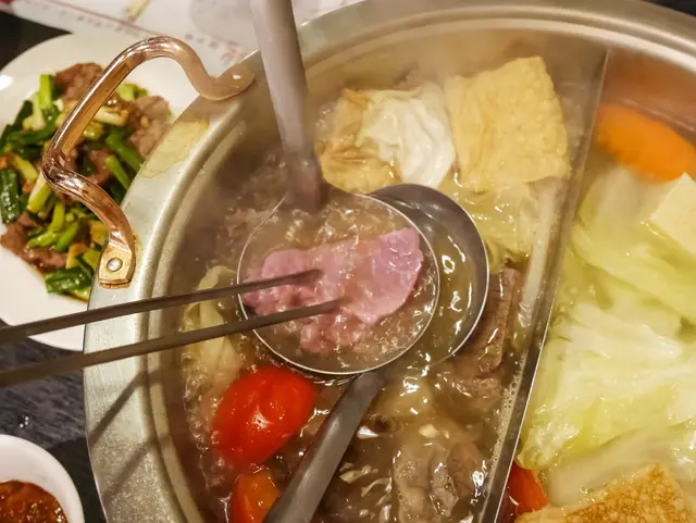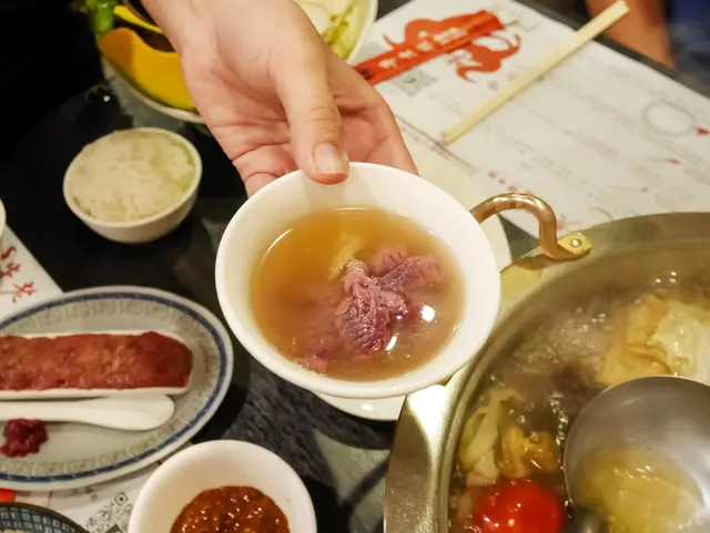 蔬菜湯頭:大量蔬果熬製而成,相較於牛骨湯頭更為清甜淡雅,少了牛骨厚實的風味,燙煮蔬食、肉品非常百搭順口。若聚餐剛好有不吃牛的夥伴,則可以選擇蔬菜湯頭,搭配其他品項的肉品唷!