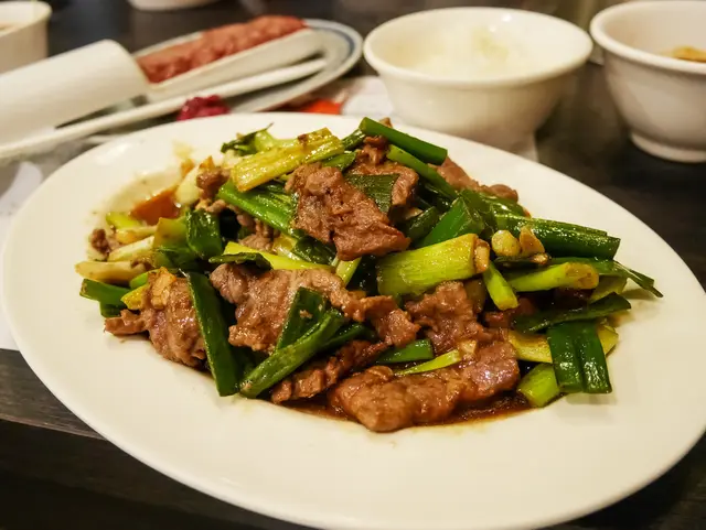 牛肉片厚實且成大塊片狀,相較於外面小餐廳的蔥爆牛,其牛肉原味更加明顯。蔥段原本的鮮甜以及佐料的香氣,讓嫩牛肉的風味更加提升,香味十足,是道口味稍重、非常下飯的風味料理。