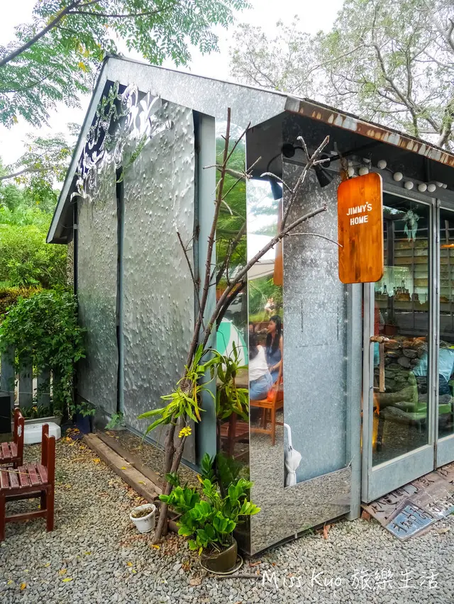【Jimmy's Home 吉米.夢 綠食咖啡】位於橋頭糖廠戶外婚禮「白屋」旁,基地小小的,但因本身的鐵皮建築外觀,搭配樹林及戶外美式帳篷,成了近期高雄火夯的森林系午茶景點。