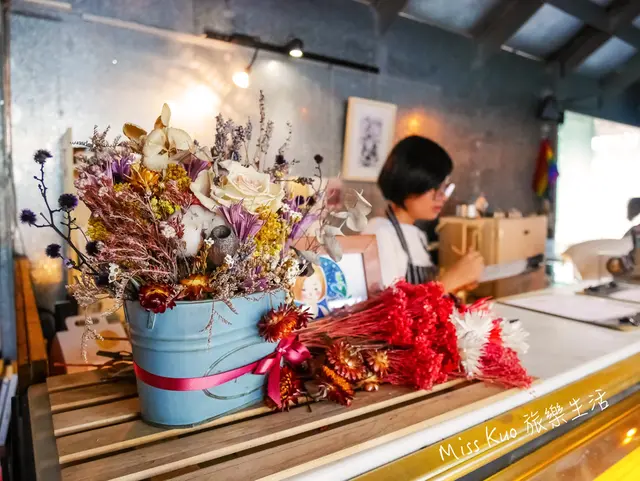 這天,發現有許多人客也帶著自家的毛孩子一同前來,讓毛孩互動一下也不錯。餐廳內角落有許多小巧思,如乾燥花、復古家具的陳設,也有販售著自創的明信片及日系碗盤商品等。