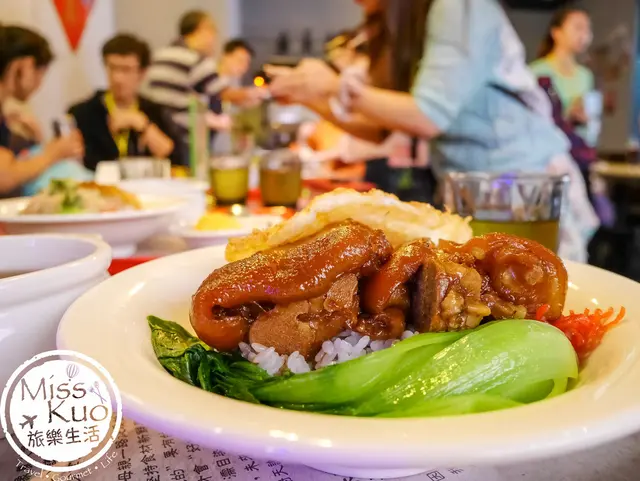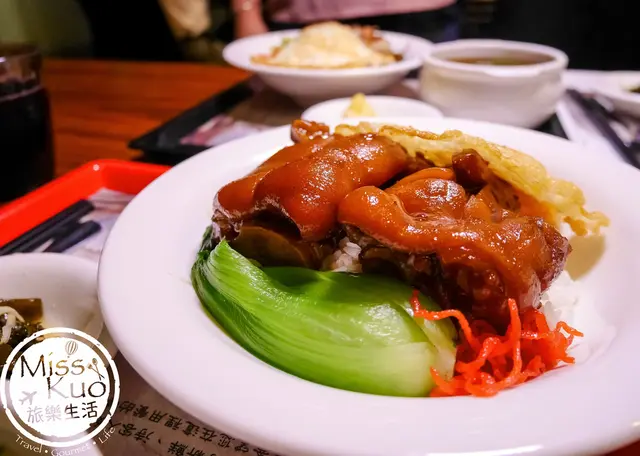 店家豬腳使用麥芽糖滷製,外部呈現出美麗的焦糖色澤,肉質Q彈有嚼勁,咀嚼過程享受著飽口的膠原黏牙感。