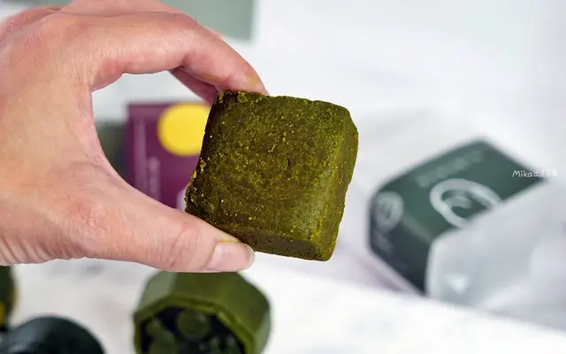 微黏牙外皮與厚餡完美比例,抹茶+自製榛果泥拌製而成