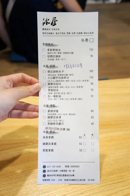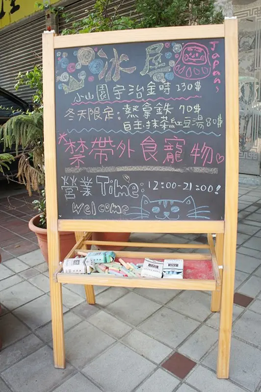 冰屋在住宅大樓的一樓,對面有個小公園,環境很清幽安靜,門口的小黑板上都是店內人氣商品