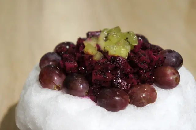 有火龍果、奇異果、無籽葡萄,別看水果好像份量不多,其實秘密都在裡面,往下一挖扎實鋪得滿滿滿!金膨湃