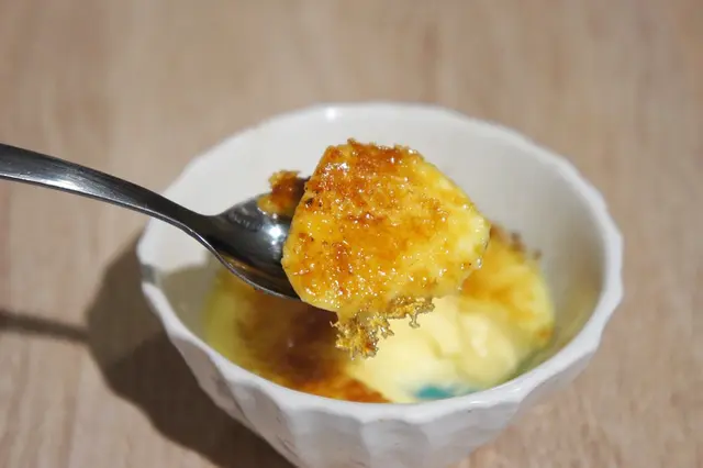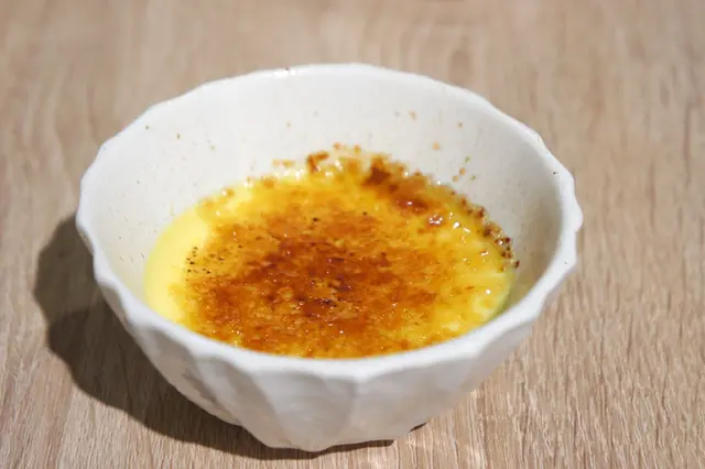 焦糖烤布蕾表面烤得微焦,輕輕敲打表層的薄脆焦糖,與帶有奶香的烤布蕾一起入口,綿密滑順不甜膩